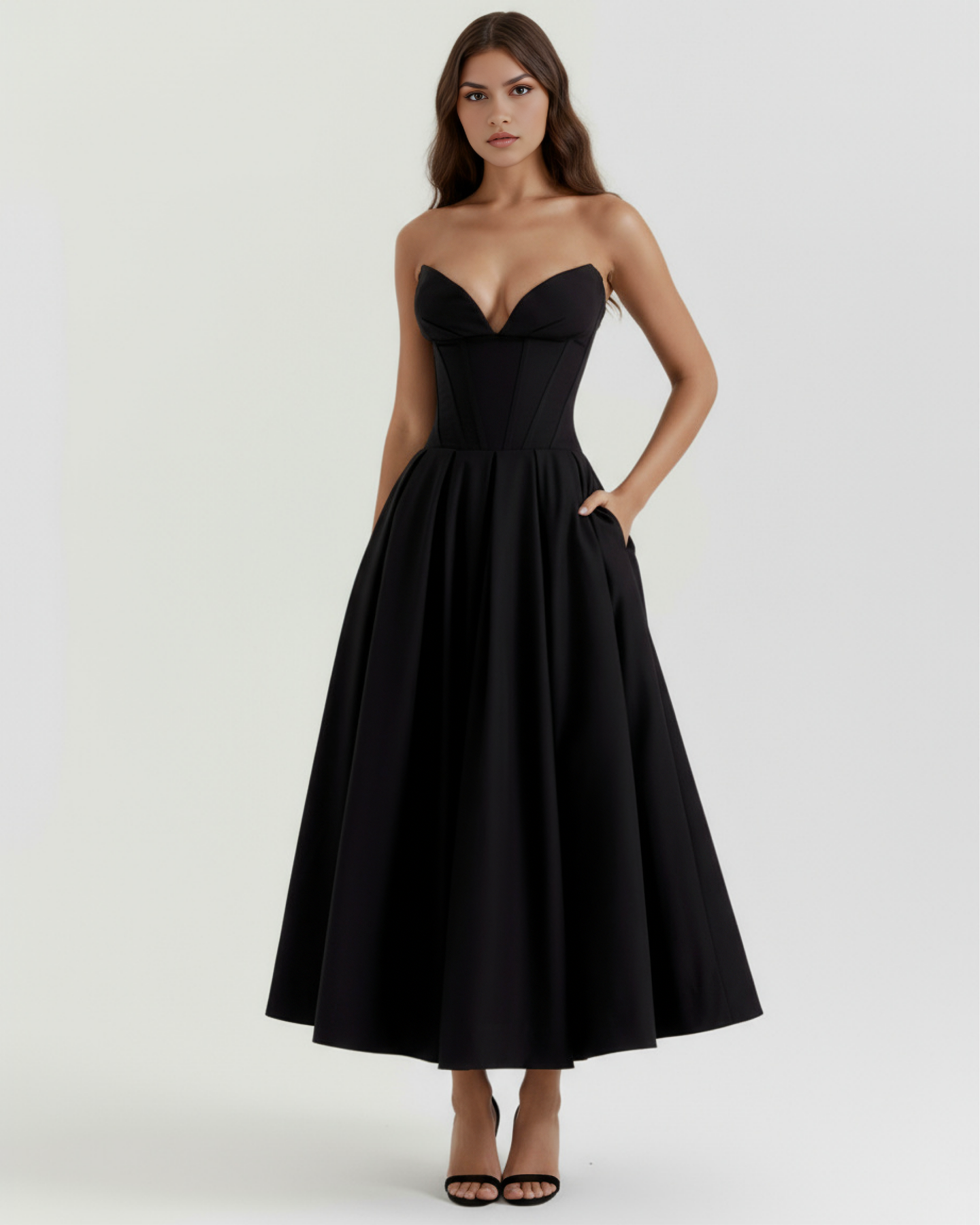 Our 'Amalfi' is simply THE dress for your special occasions this season. Feminine, chic, truly an icon. The architectural sculpted bodice is perfectly boned to cinch your waist and contrasted by the full, feminine, voluminous skirt.